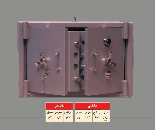 - داخل جداره درب و بدنه گاوصندوق بتن مسلح با شبكه بندى الماتور با قطر 16mmمى باشد.
